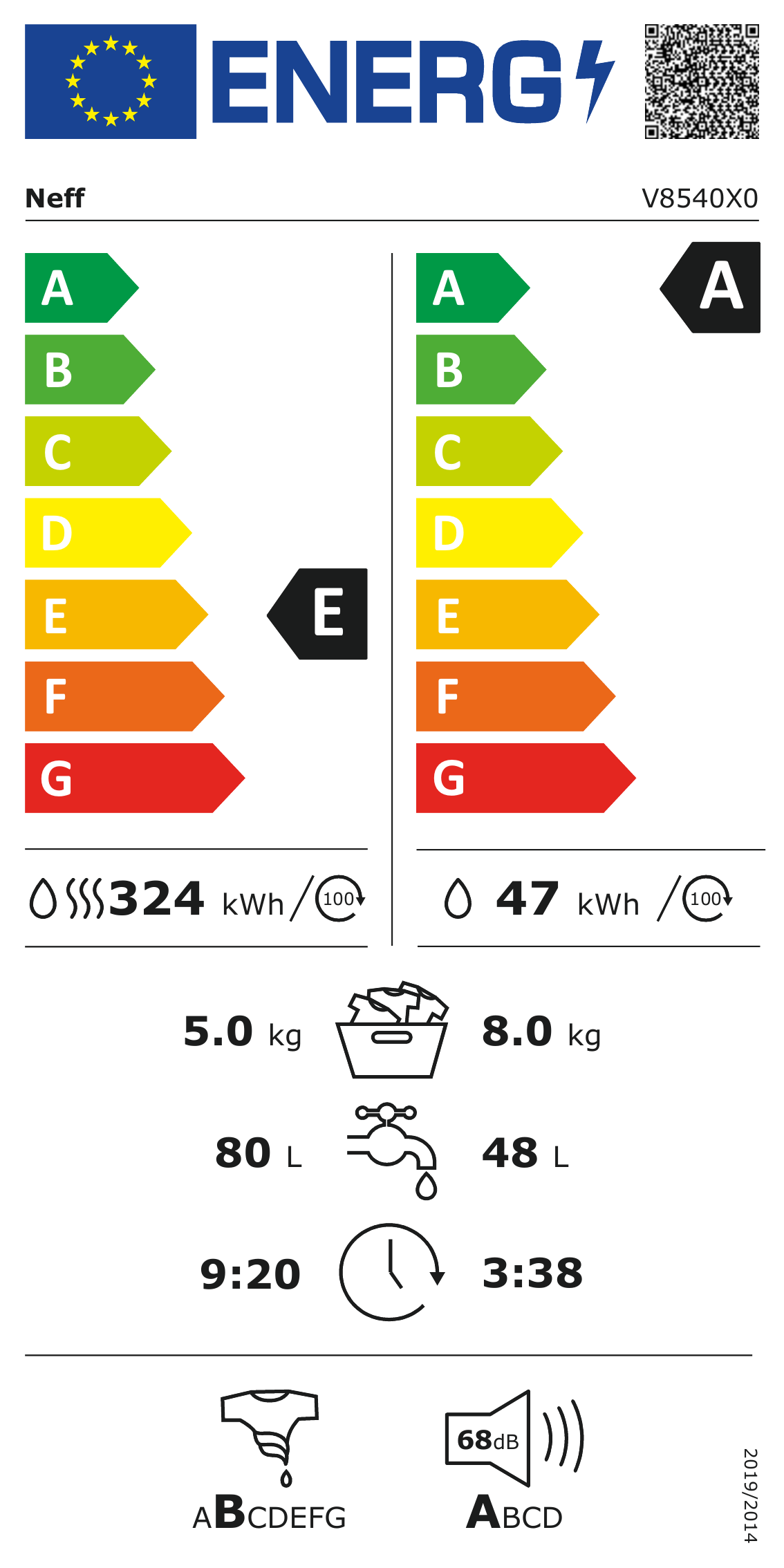 V8540X0 Einbau-Waschtrockner, 8/5 kg